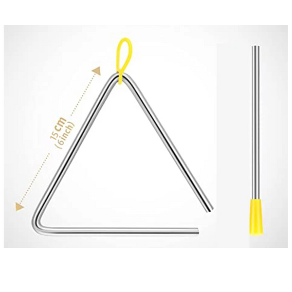 Perfect for beginners, students, and percussion enthusiasts, this 6" metal triangle produces a bright, clear sound. Lightweight and durable, it comes with a metal beater for easy play. Ideal for music classes, orchestras, or home practice.